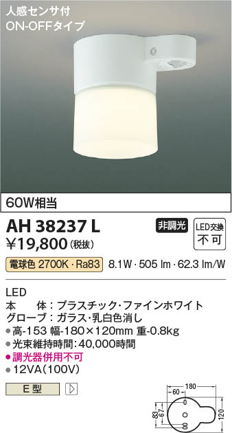 Koizumi コイズミ照明 LED小型シーリング AH38237L | 商品情報 | LED照明器具・照明機器の激安通信販売・格安通販・業務用販売・見積もり販売 照明倉庫 -LIGHTING DEPOT-