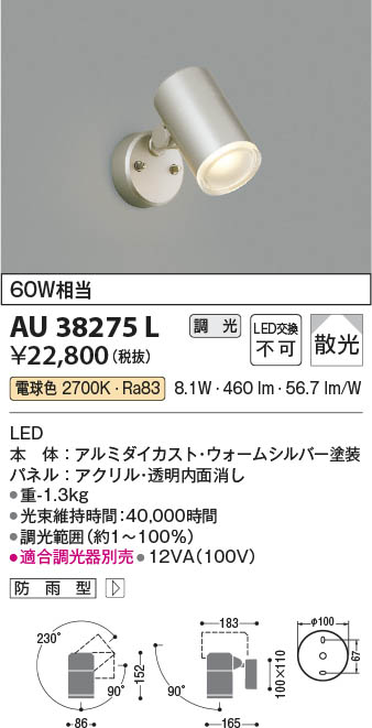 Koizumi コイズミ照明 LEDエクステリアスポットライト AU38275L