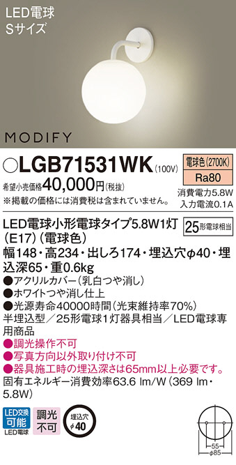 Panasonic LED ブラケット LGB71531WK