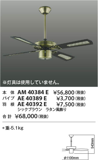 Koizumi コイズミ照明 インテリアファン本体 AM40384E
