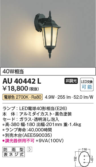 Koizumi コイズミ照明 LED防雨型ブラケット AU40442L