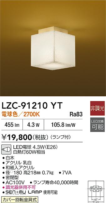 DAIKO 大光電機 小型シーリング LZC-91210YT