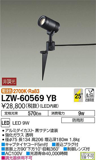 DAIKO 大光電機 アウトドアスポットライト LZW-60569YB