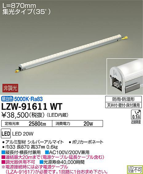 DAIKO 大光電機 アウトドアラインライト LZW-91611WT