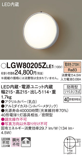 Panasonic エクステリアライト LGW80205ZLE1
