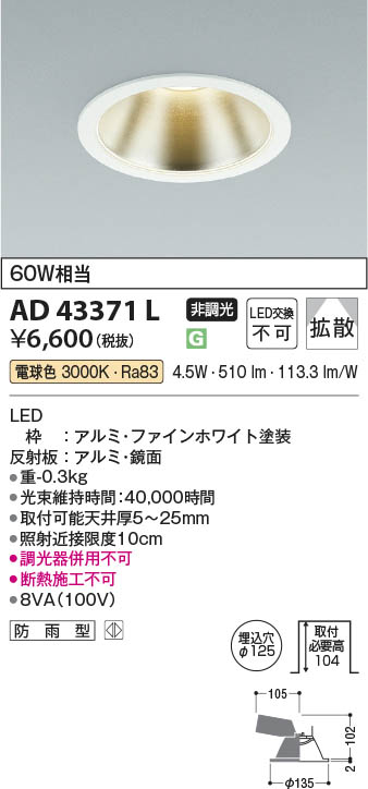 Koizumi コイズミ照明 LEDダウンライト AD43371L
