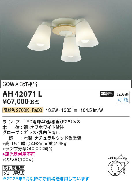 Koizumi コイズミ照明 LEDシーリング AH42071L | 商品情報 | LED照明器具・照明機器の激安通信販売・格安通販・業務用販売・見積もり販売 照明倉庫 -LIGHTING DEPOT-