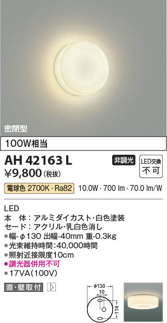 Koizumi コイズミ照明 LED小型シーリング AH42163L