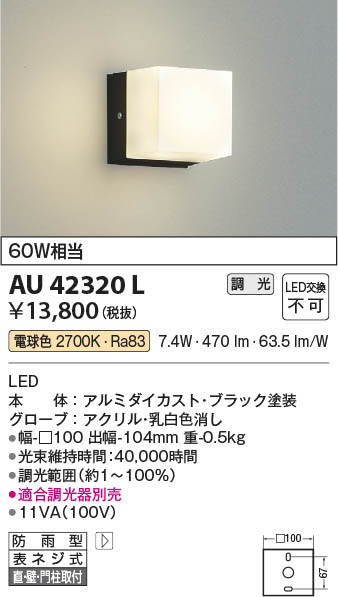 Koizumi コイズミ照明 LED防雨型ブラケット AU42320L