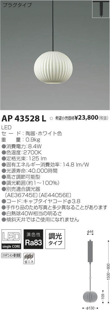 コイズミ照明 KOIZUMI LED ペンダント AP43528L