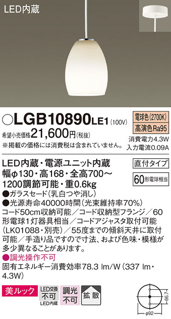 ●本体材質・仕上・色:ガラスセード(乳白つや消し)