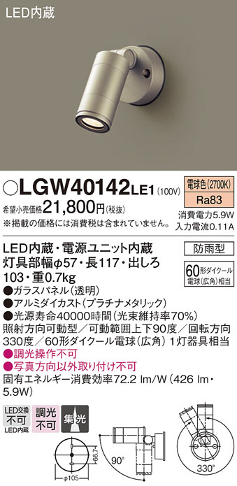 ●本体材質・仕上・色:ガラスパネル(透明)・アルミダイカスト(プラチナメタリック)