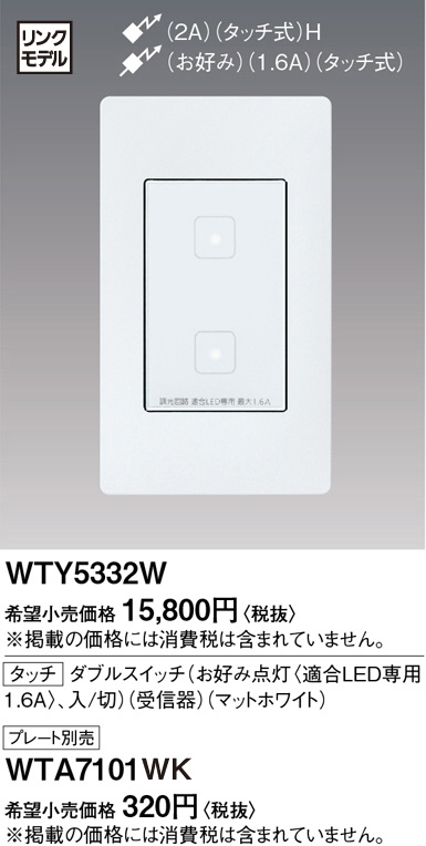 Panasonic アドバンスタッチダブルお好み点灯 適合LED専用1.6A 入/切受信器 WTY5332W