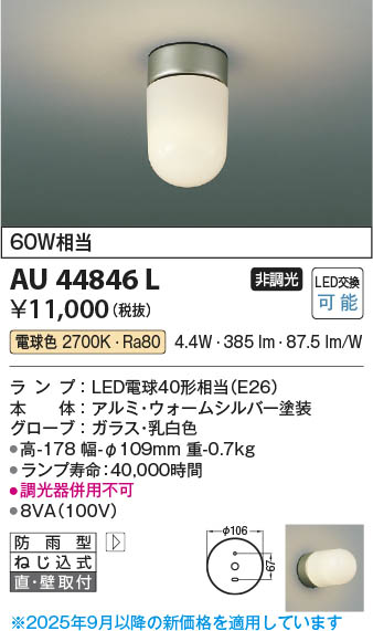 Koizumi コイズミ照明 LED防雨型ブラケット AU44846L