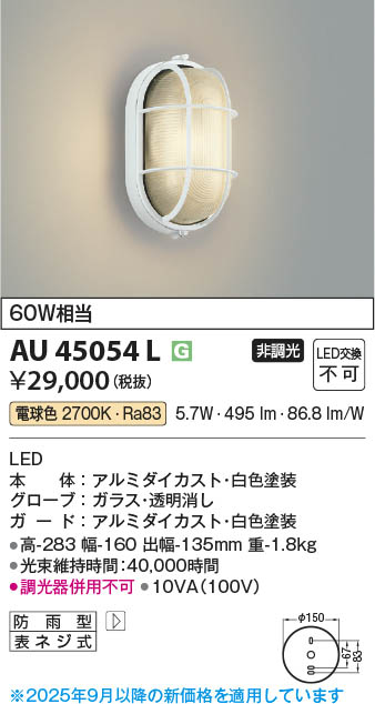 Koizumi コイズミ照明 LED防雨型ブラケット AU45054L