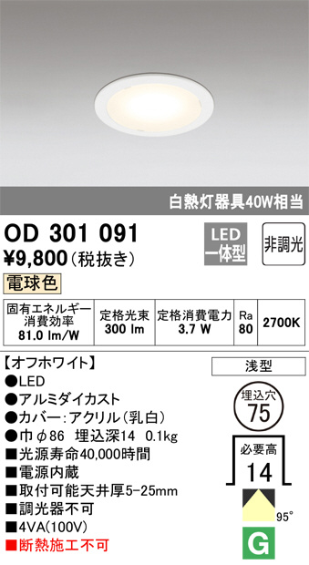 ODELIC オーデリック ダウンライト OD301091 | 商品情報 | LED照明器具・照明機器の激安通信販売・格安通販・業務用販売・見積もり販売 照明倉庫 -LIGHTING DEPOT-