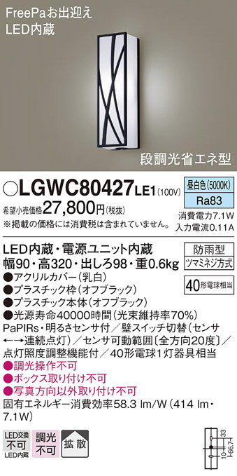 ●本体材質・仕上・色:アクリルカバー(乳白)・プラスチック枠(オフブラック)・プラスチック本体(オフブラック)