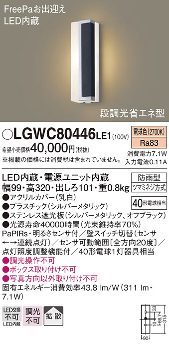●本体材質・仕上・色:アクリルカバー(乳白)・プラスチック(シルバーメタリック)・ステンレス遮光板(シルバーメタリック、オフブラック)