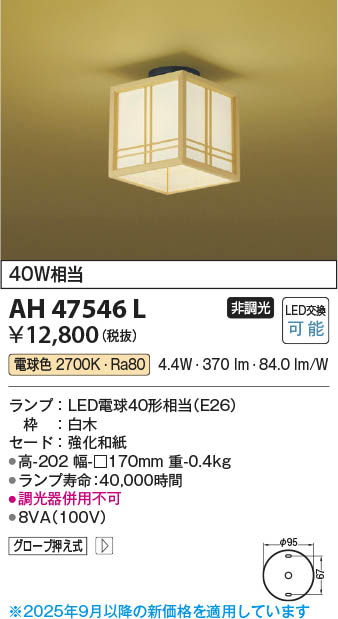 Koizumi コイズミ照明 LED和風シーリング AH47546L | 商品情報 | LED照明器具・照明機器の激安通信販売・格安通販・業務用販売・見積もり販売 照明倉庫 -LIGHTING DEPOT-