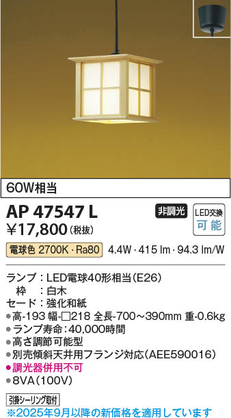 Koizumi コイズミ照明 LED和風ペンダント AP47547L