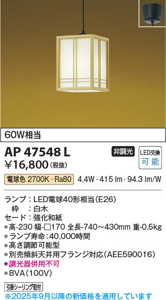 Koizumi コイズミ照明 LED和風ペンダント AP47548L