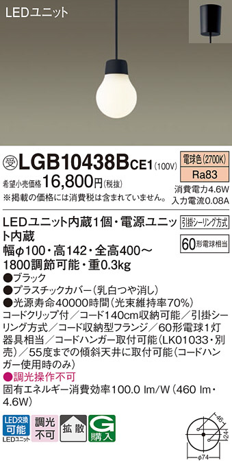 Panasonic ペンダント LGB10438BCE1