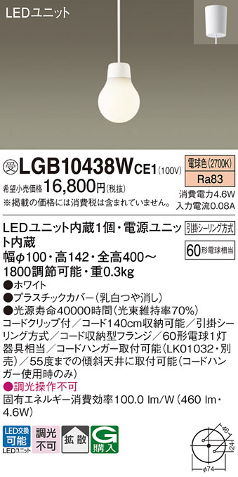 Panasonic ペンダント LGB10438WCE1