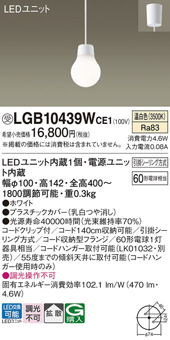 ●本体材質・仕上・色:ホワイト・プラスチックカバー(乳白つや消し)