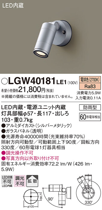 Panasonic エクステリアスポットライト LGW40181LE1