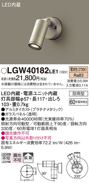 Panasonic エクステリアスポットライト LGW40182LE1