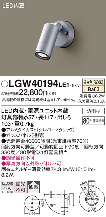 Panasonic エクステリアスポットライト LGW40194LE1
