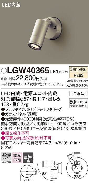 ●本体材質・仕上・色:アルミダイカスト(プラチナメタリック)・ガラスパネル(透明)