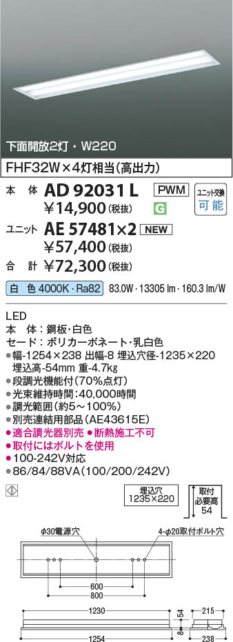 Koizumi コイズミ照明 LEDベースライト 本体 AD92031L