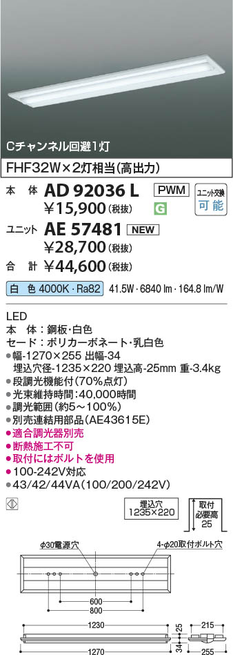 Koizumi コイズミ照明 LEDベースライト 本体 AD92036L