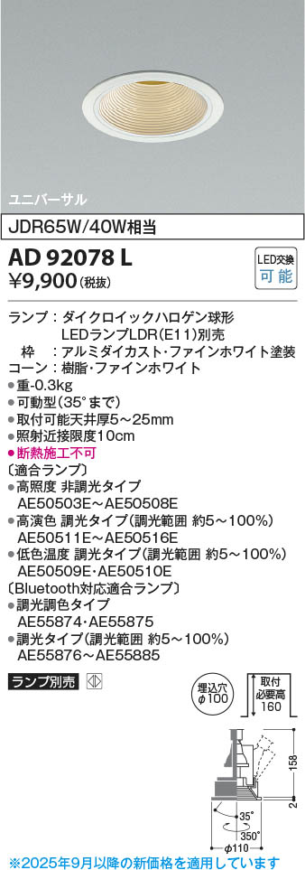 Koizumi コイズミ照明 LEDユニバーサルダウンライト AD92078L | 商品情報 | LED照明器具・照明機器の激安通信販売・格安通販・業務用販売・見積もり販売 照明倉庫 -LIGHTING DEPOT-