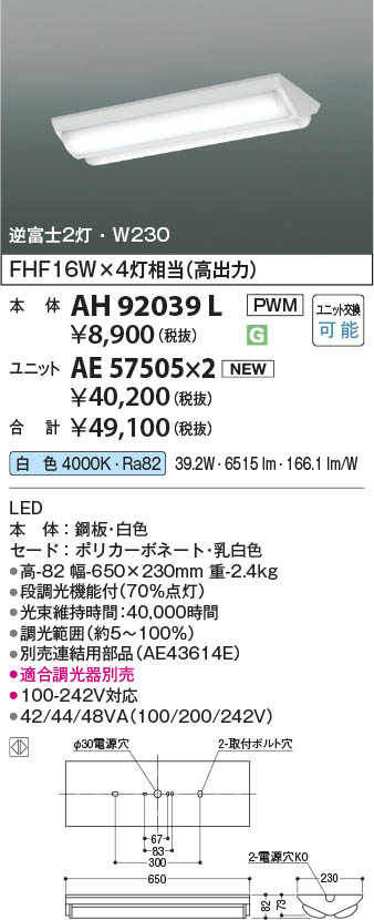 Koizumi コイズミ照明 LEDベースライト 本体 AH92039L