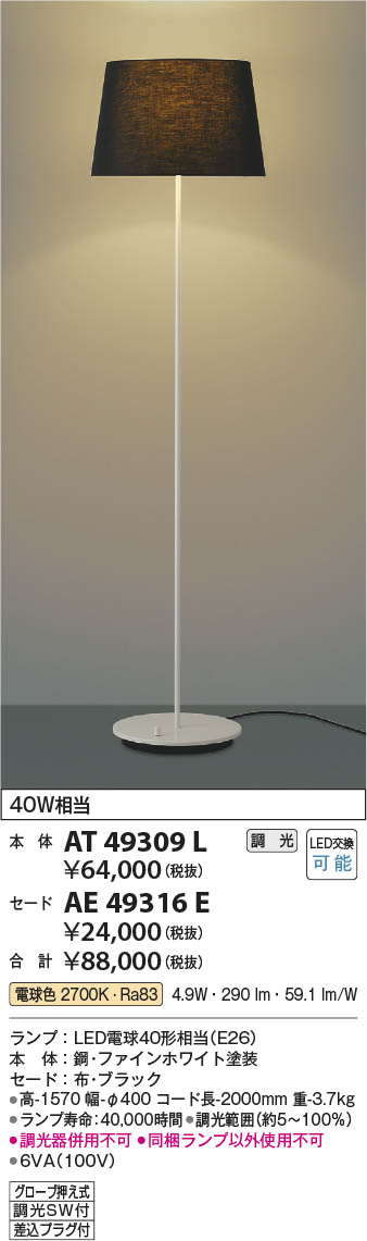 Koizumi コイズミ照明 LEDスタンド 本体 AT49309L