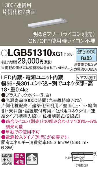 ●寸法:幅56・長301エンド込+別でコネクタ部・高18