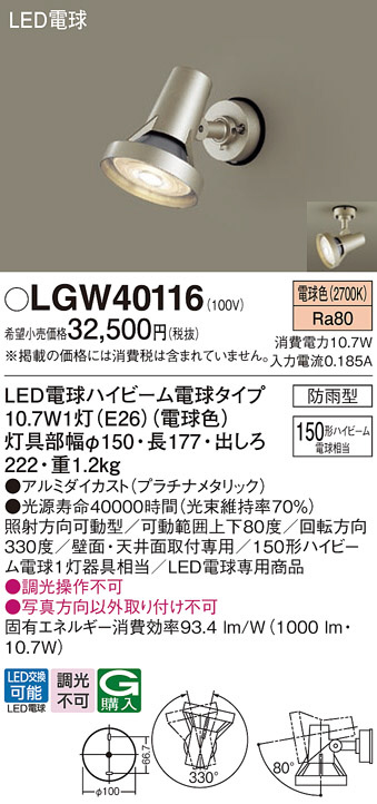 Panasonic エクステリアスポットライト LGW40116 | 商品情報 | LED照明器具・照明機器の激安通信販売・格安通販・業務用販売・見積もり販売 照明倉庫 -LIGHTING DEPOT-