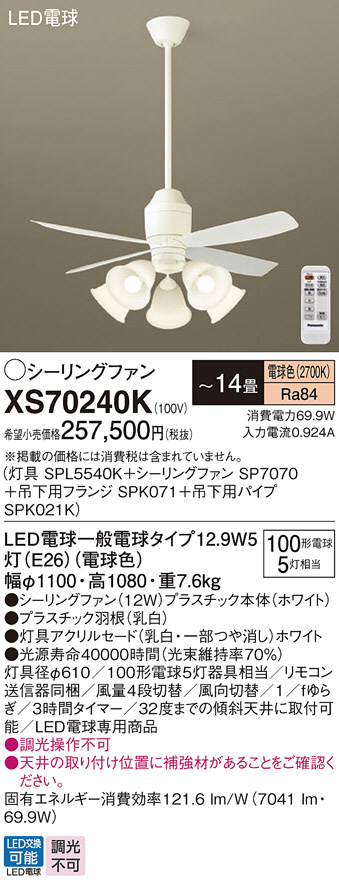 ●本体材質・仕上・色:シーリングファン(12W)プラスチック本体(ホワイト)・プラスチック羽根(乳白)・灯具アクリルセード(乳白・一部つや消し)ホワイト