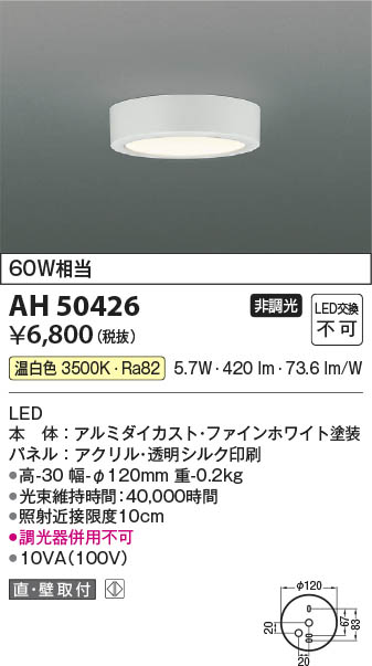 Koizumi コイズミ照明 LED小型シーリング AH50426 | 商品情報 | LED照明器具・照明機器の激安通信販売・格安通販・業務用販売・見積もり販売 照明倉庫 -LIGHTING DEPOT-