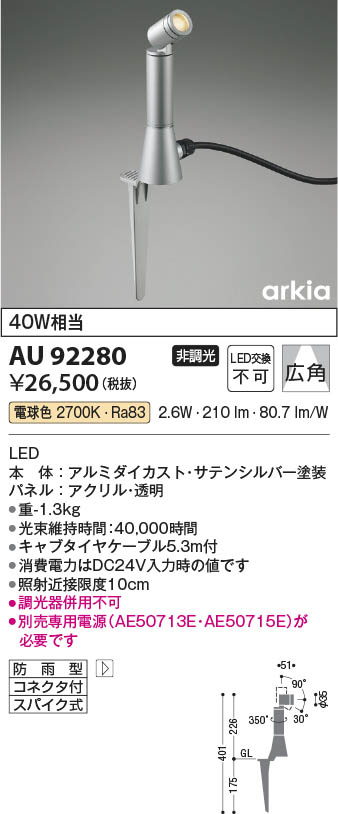 Koizumi コイズミ照明 LED DC24Vエクステリアスパイクスポット AU92280