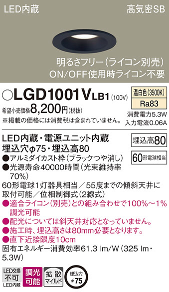 Panasonic ダウンライト LGD1001VLB1
