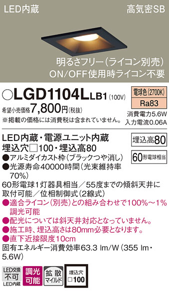 Panasonic ダウンライト LGD1104LLB1