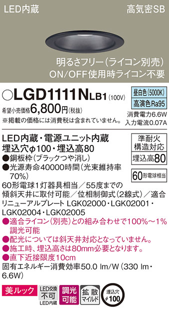 Panasonic ダウンライト LGD1111NLB1