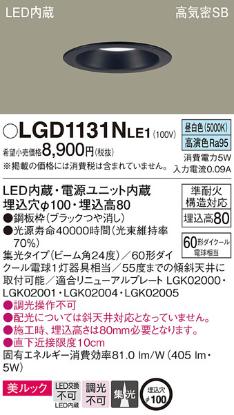 Panasonic ダウンライト LGD1131NLE1
