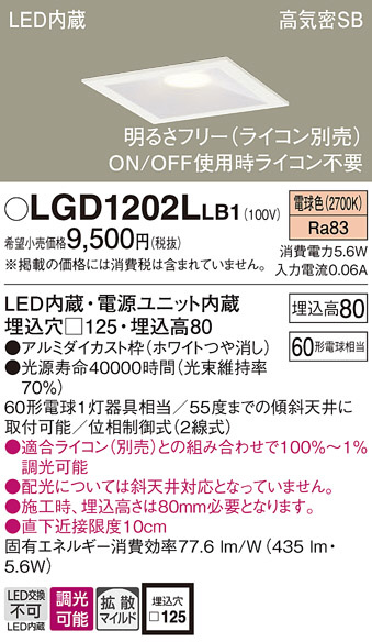 Panasonic ダウンライト LGD1202LLB1