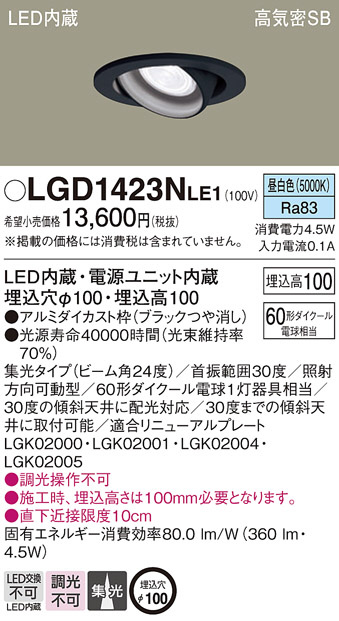 Panasonic ダウンライト LGD1423NLE1 | 商品情報 | LED照明器具・照明機器の激安通信販売・格安通販・業務用販売・見積もり販売 照明倉庫 -LIGHTING DEPOT-