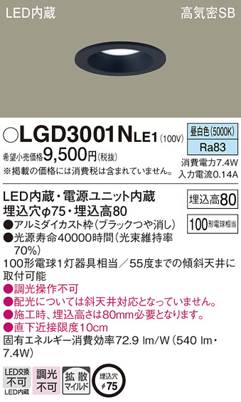 Panasonic ダウンライト LGD3001NLE1 | 商品情報 | LED照明器具・照明機器の激安通信販売・格安通販・業務用販売・見積もり販売 照明倉庫 -LIGHTING DEPOT-