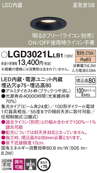 Panasonic ダウンライト LGD3021LLB1 | 商品情報 | LED照明器具・照明機器の激安通信販売・格安通販・業務用販売・見積もり販売 照明倉庫 -LIGHTING DEPOT-